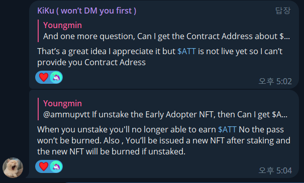 여기서 하나 궁금한 점은 만약에 Atticc Early Adopter Pass NFT를 언스테이킹(Unstaking)을 하게 된 이후의 메커니즘이 궁금해졌다.