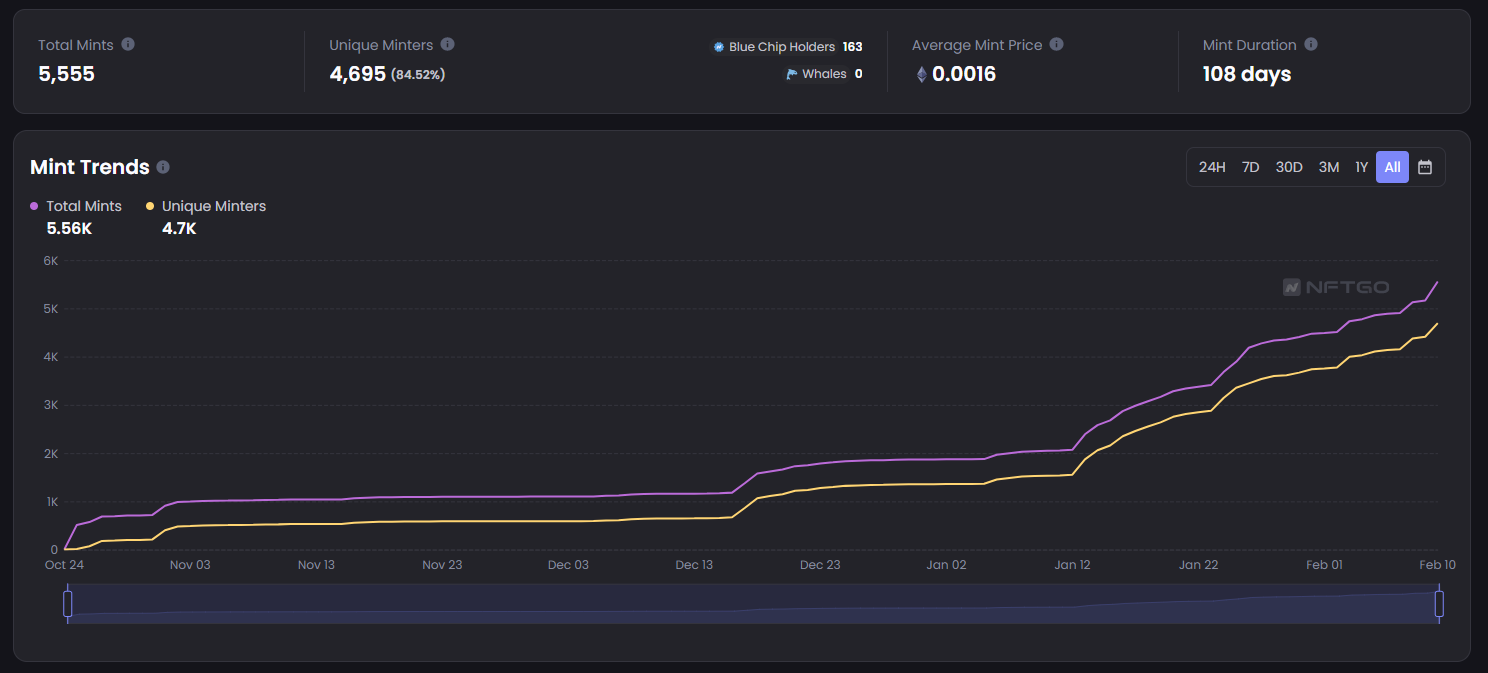 해당 지표를 보면 Unique Minters의 비율이 84%가 넘어가는 것을 볼 수 있다.