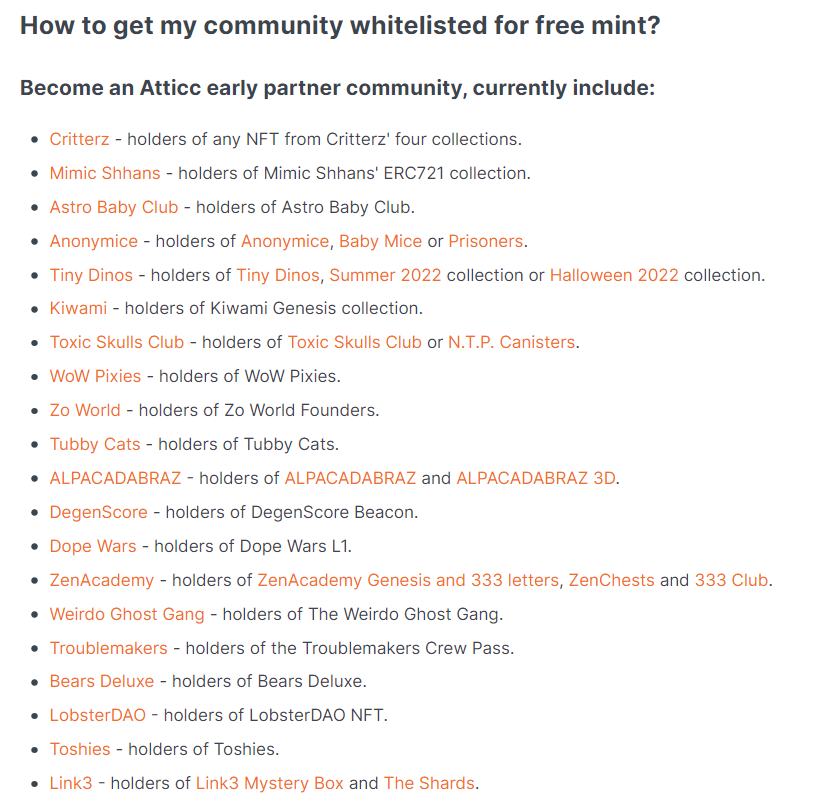 - 나아가 atticc.xyz와 파트너십을 맺은 다양한 프로젝트의 Airdrop 과 Whitelist 권한을 주는 유틸리티를 제공할 것으로 보인다.